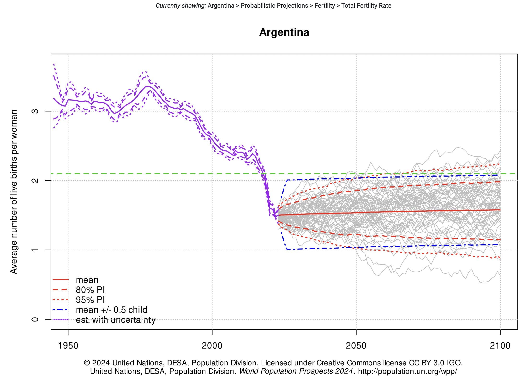 Other sources people rely on aren’t any better. If you ask Google or AI about the latest fertility for Argentina, the number you get is again 1.50, a figure that is 5 years out of date and makes the problem seem much less serious than it is.