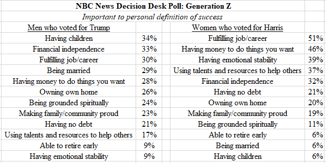A shock poll just went viral showing how little having children matters for most peoples’ idea of ‘success.’ Conservative women ranked “having children” sixth in importance behind such things as homeownership, having a fulling job and “having money to do things you want.” For liberal women, “having children” ranked dead last in a long list of priorities.