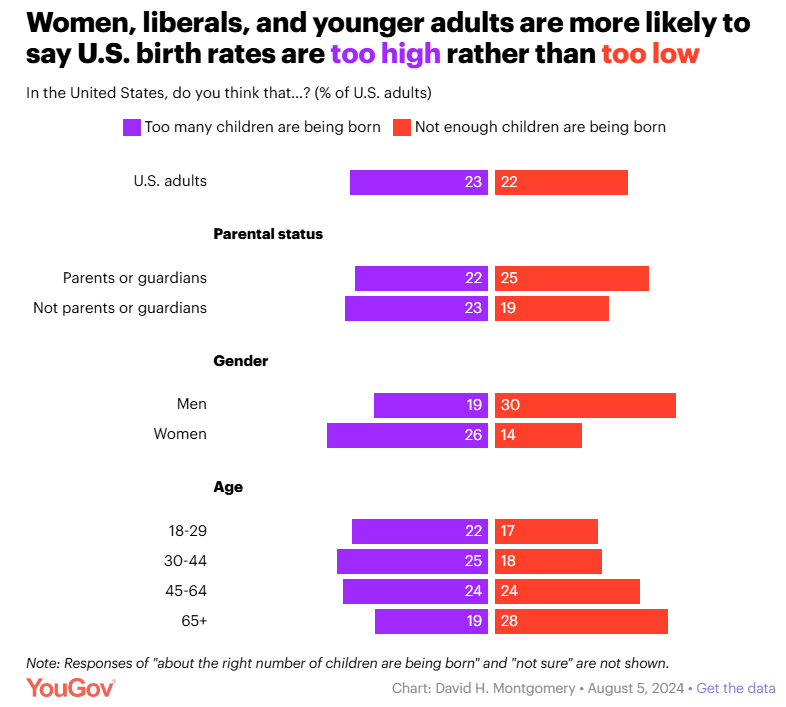 In 2024, YouGov published a poll of 3,386 US adults that asked a simple question: “Are there too many children being born or not enough?”