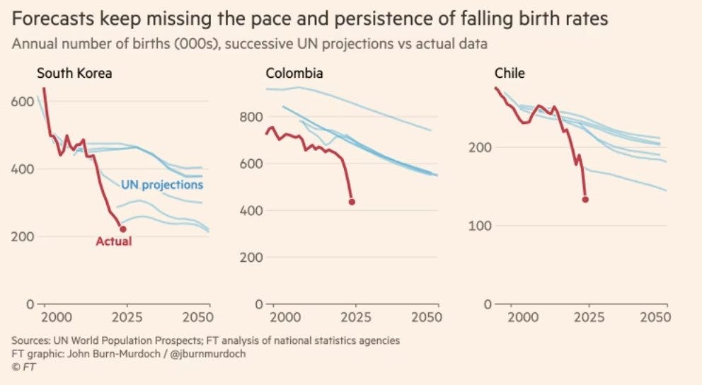 But the UN forecasts have been horrendous, with the actual number of births in country after country coming in far below projections.