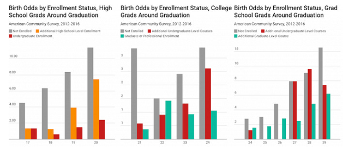The main reason is much simpler. People don’t usually have kids while they are enrolled in school and almost everyone waits until they have graduated before trying.