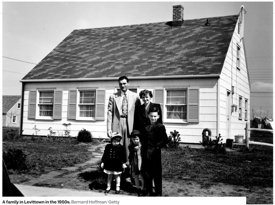 Suddenly with Levitt’s great innovation, plus the automobile, everything changed. Regular people could both be integrated into the productive urban economy and have a house that was suitable for raising children, with a yard to play in and a little air gap so the noise wouldn’t upset the neighbors. And with those new mortgage programs, people could buy that house early in life, while they were still young enough to have children.