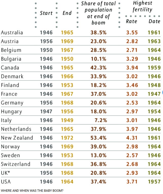 When we look at countries that the most powerful baby booms, the top five winners were the United States, Canada, Australia and New Zealand along with the Netherlands.